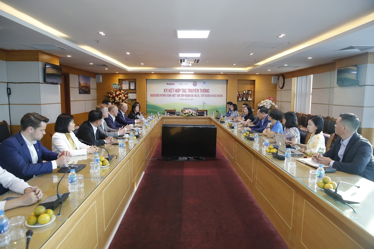During their visit and working trip in Vietnam, the two Co-Presidents and Global CEOs of the Royal De Heus Group from the Netherlands were present to witness the signing ceremony of a Memorandum of Understanding (MoU) for media cooperation between De Heus Vietnam, Hung Nhon Group, and Nong Thon Ngay Nay/Dan Viet Newspaper for the 2022-2025 period.
