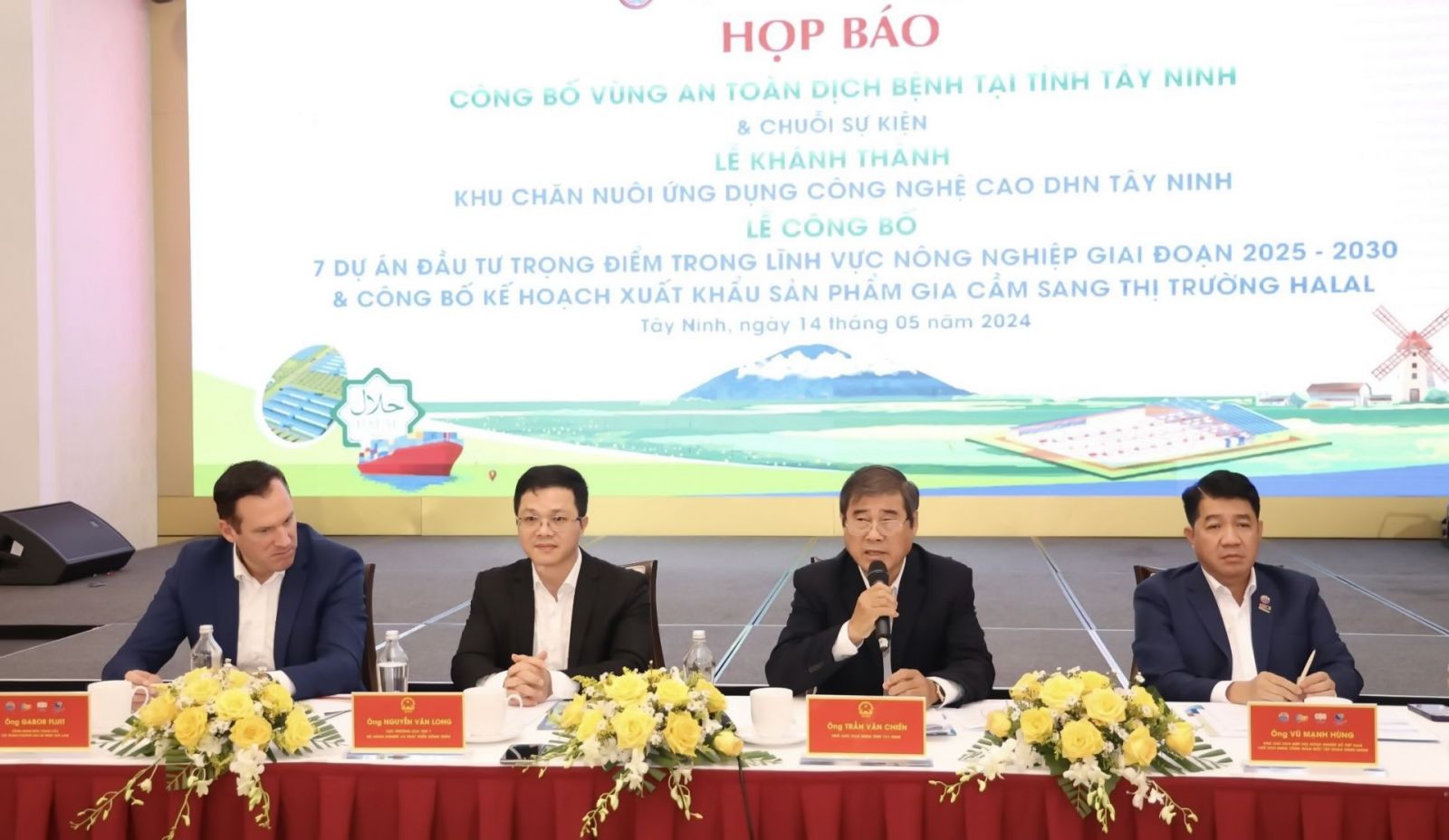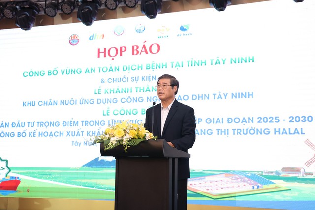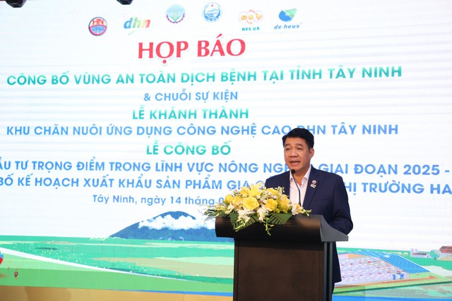 On May 14th, in Tay Ninh City, the Ministry of Agriculture and Rural Development, the Tay Ninh Provincial People's Committee, De Heus Co., Ltd. (Netherlands), and Hung Nhon Vietnam Group Joint Stock Company held a press conference regarding the plan to organize the ceremony to announce Tay Ninh Province as a Disease-Free Zone. This event will be part of a series of activities including: the inauguration of the DHN Tay Ninh High-Tech Livestock Farming Area, the announcement of 7 key agricultural investment projects for the 2025-2030 period, and the announcement of the plan to export poultry products to the Halal market.